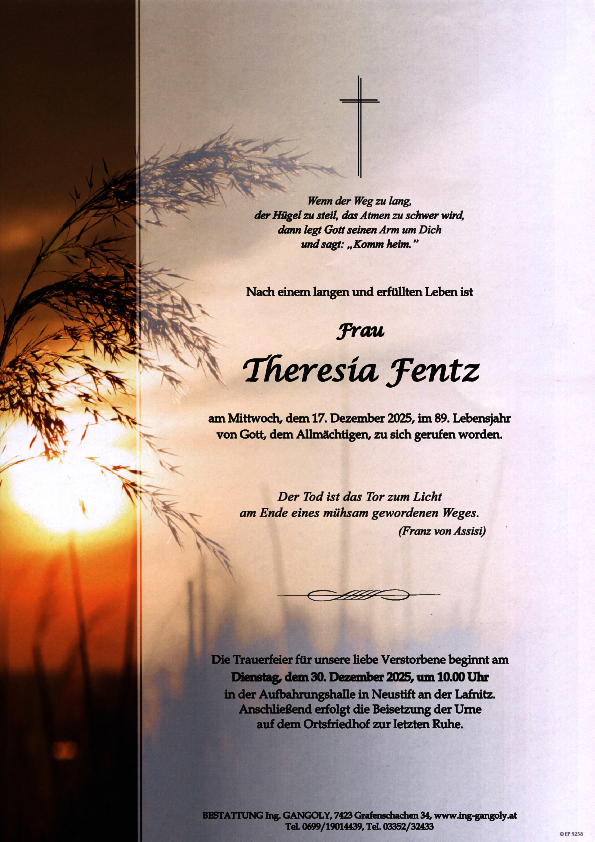 Anschließend erfolgt die Beisetzung zur letzten Ruhe.