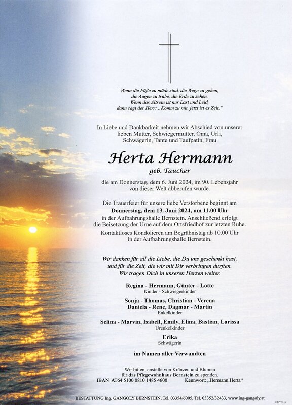 Anschließend erfolgt die Beisetzung zur letzten Ruhe.