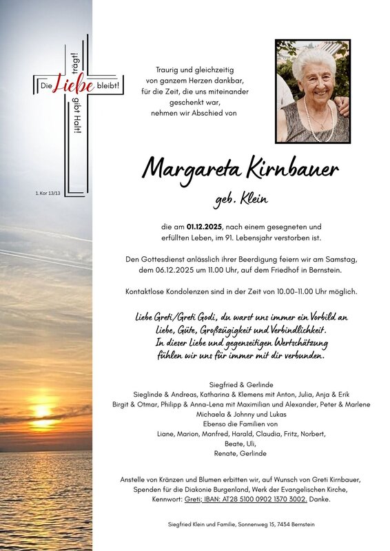 Anschließend erfolgt die Beisetzung zur letzten Ruhe.