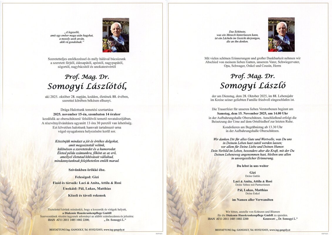 Urnenbegräbnis beginnend in der Aufbahrungshalle Oberschützen