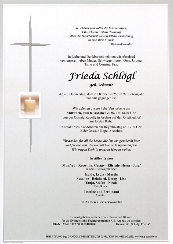 Anschließend erfolgt die Beisetzung zur letzten Ruhe.