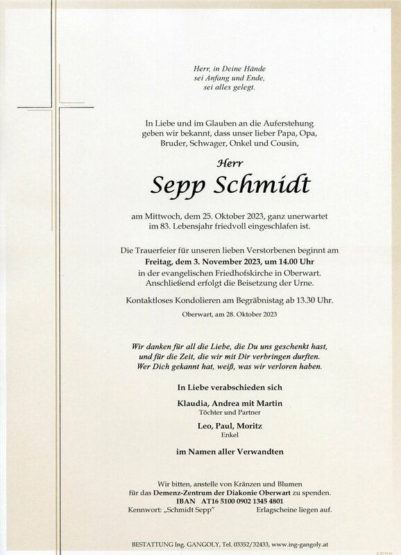 Urnenbegräbnis beginnend in der evangelischen Friedhofskirche in Oberwart