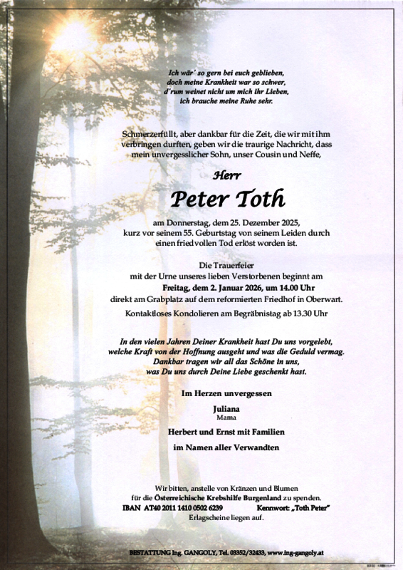 am Freitag, 02. 01. 2026, um 14.00 Uhr.